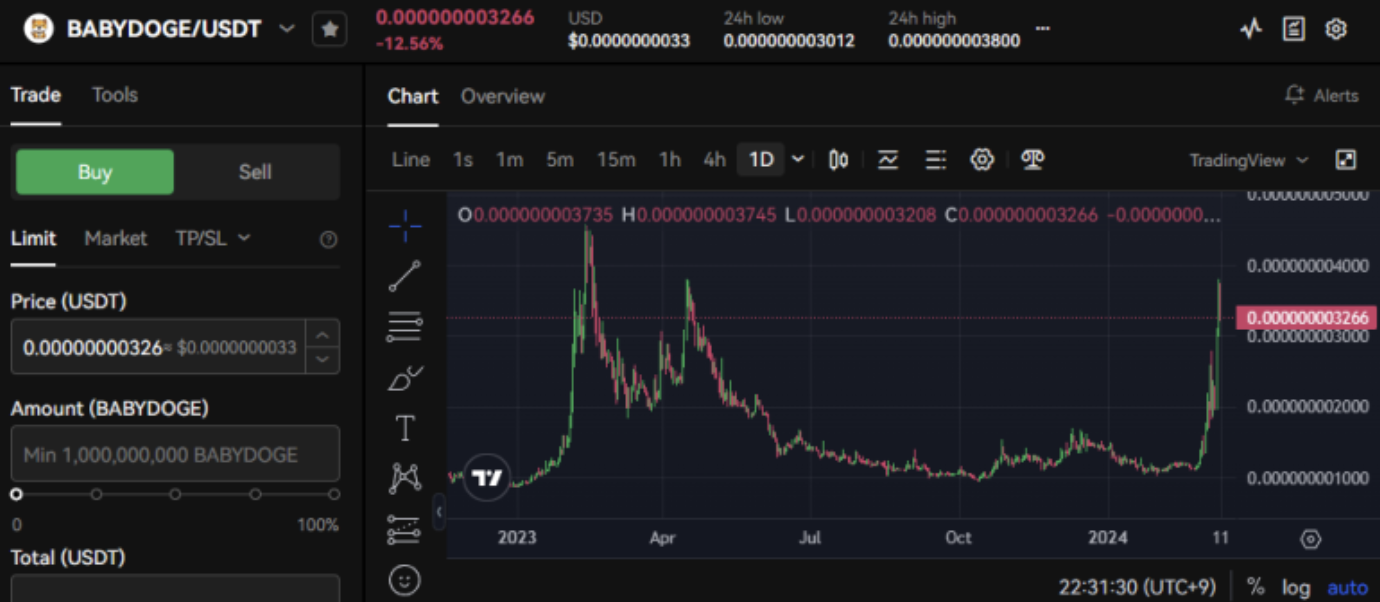 베이비도지코인은 밈코인 중에서도 강력한 커뮤니티 지지를 받으며 성장하고 있는 암호화폐입니다. 비트겟 거래소를 통해 쉽게 구매할 수 있으며, 향후 시세 변동에 따라 신중하게 투자 전략을 세우는 것이 중요합니다.