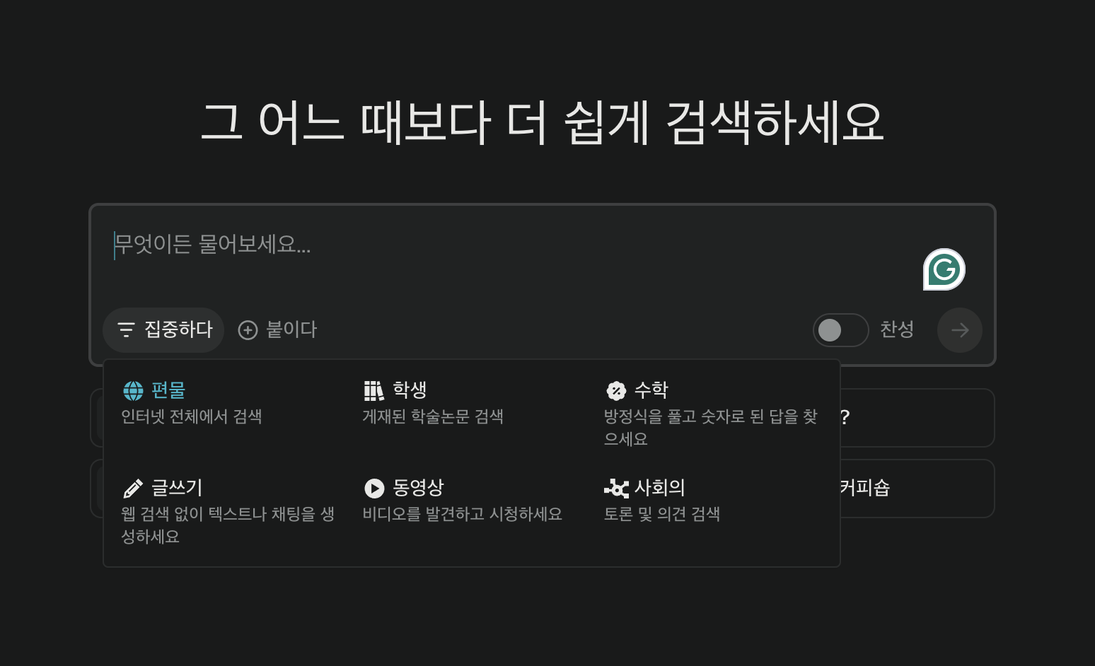 Perplexity는 사용자 맞춤형 검색 경험을 위해 다양한 고급 검색 모드를 제공합니다.