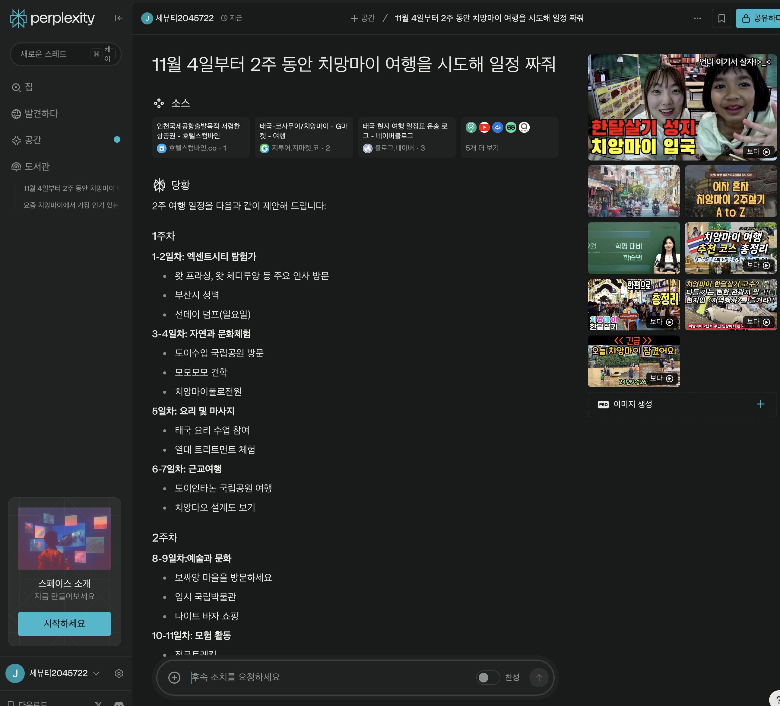 또한, Perplexity는 후속 질문까지 예측해 사용자가 추가적으로 탐구할 주제까지 제안합니다. 이를 통해 마치 대화형 인터페이스처럼 자연스럽게 정보를 탐색할 수 있습니다.