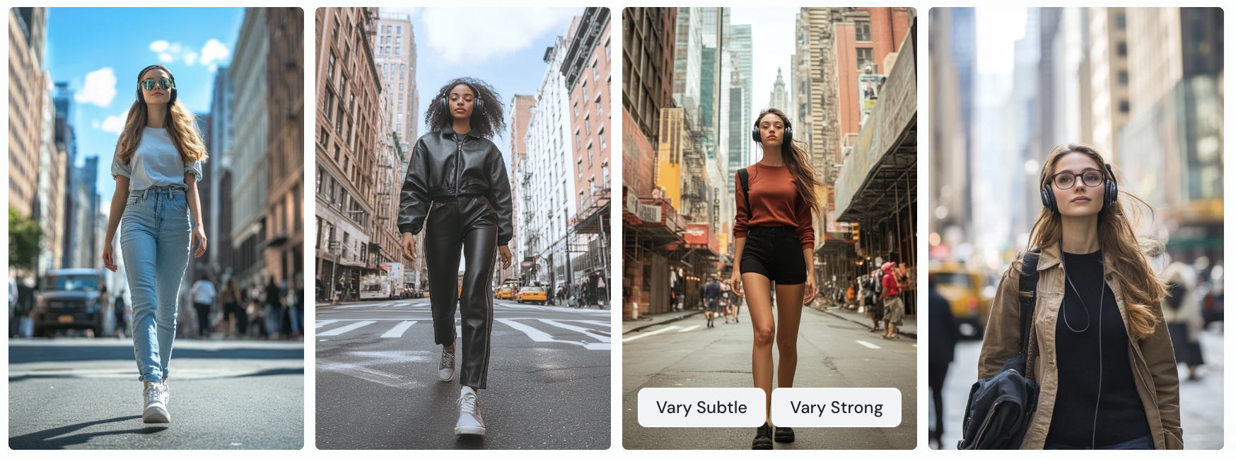 20-year-old woman walking down a hip New York street wearing a headset, side angle shot --ar 2:3 --seed 2906684585 --v 6.1