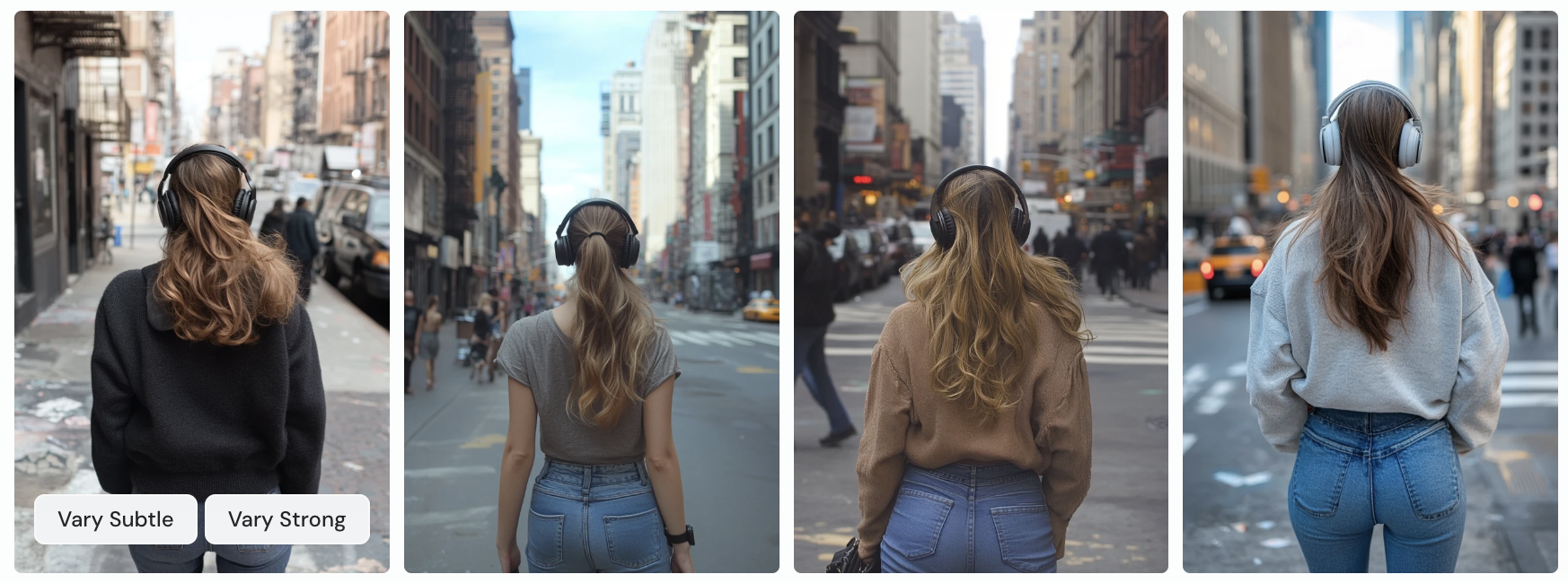 20-year-old woman walking down a hip New York street wearing a headset, shot from behind --ar 2:3 --v 6.1
