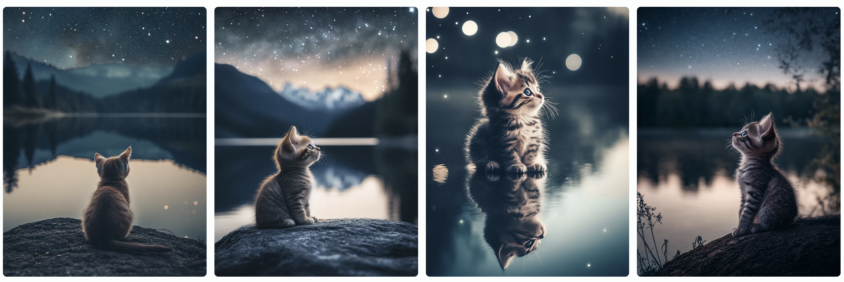 • 프롬프트 예시: “A baby kitten sitting by a calm lake, night, starry sky”