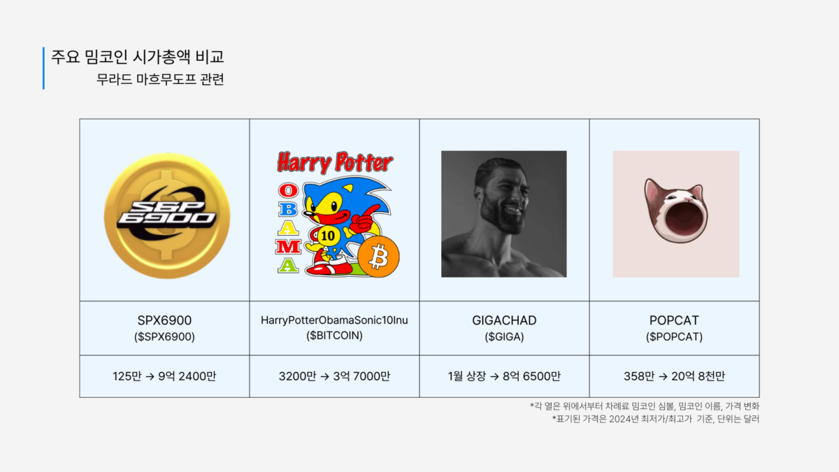 9월 이후 가파른 상승을 보여준 무라드 관련 밈코인