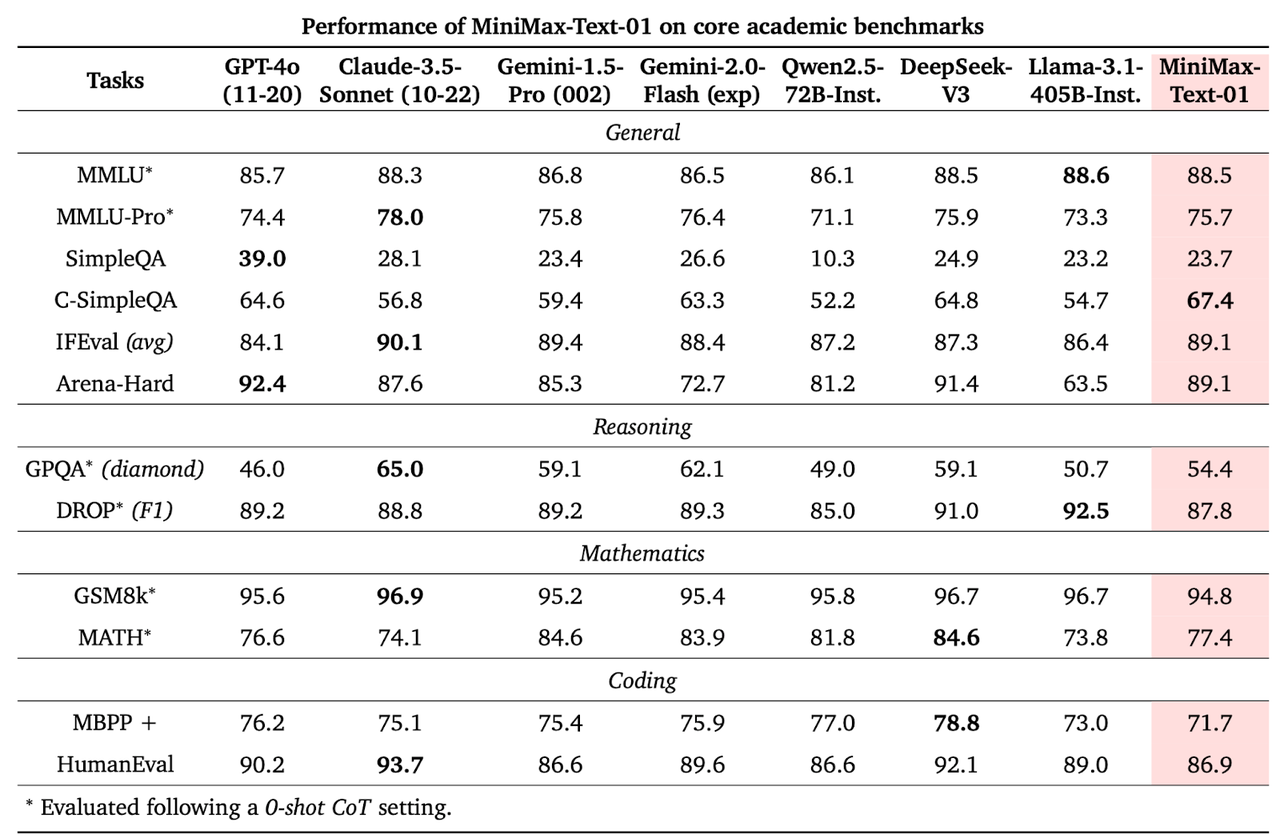 - 주요 기술: 라이트닝 어텐션 메커니즘과 전문가 혼합(MoE) 아키텍처 도입
