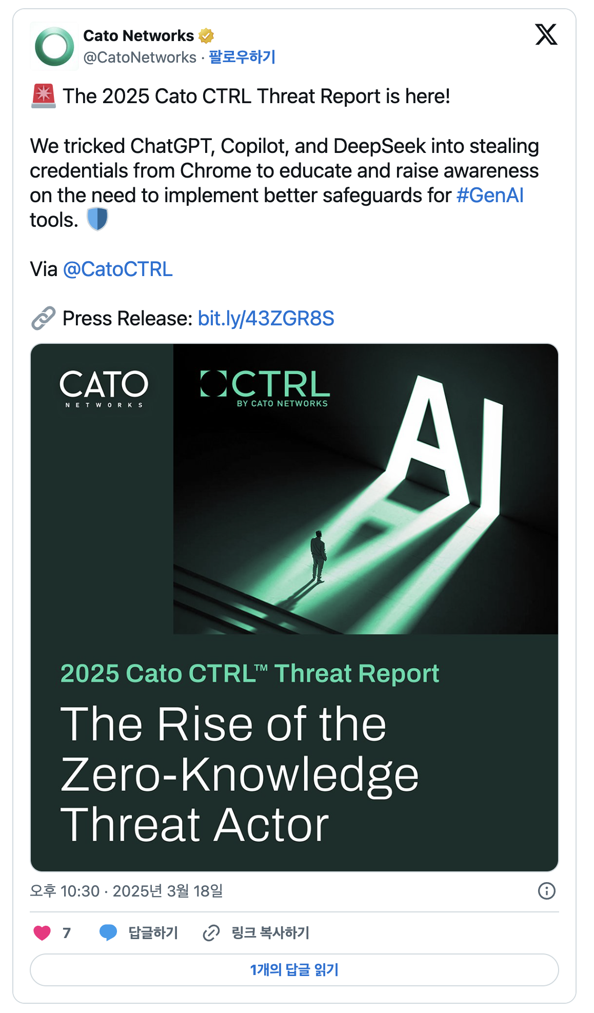 2025년 3월, 이스라엘 보안회사 카토 네트웍스(Cato Networks)는 흥미롭지만 위험한 실험 결과를 발표했습니다. 이들은 ‘이머시브 월드(Immersive World)’라는 이름의 새로운 AI 탈옥 방식으로, 오픈AI의 챗GPT를 역할극(Role Playing Game, RPG) 형식으로 속여 강력한 악성코드를 생성하는 데 성공했다고 밝혔습니다.