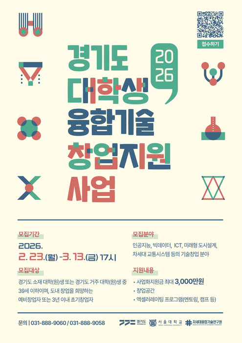 경기도와 차세대융합기술연구원(융기원)이 '2026년 경기도 대학(원)생 융합기술 창업지원 사업'의 문을 열었습니다. 경기도에 있는 대학(원)생이거나 도내에 거주하는 39세 이하 청년이라면 일단 자격은 충분합니다. 특히 AI, 빅데이터, 미래형 도시설계처럼 기술 난도가 높은 '융합기술' 분야에 힘을 실어준다는 점이 인상적입니다.