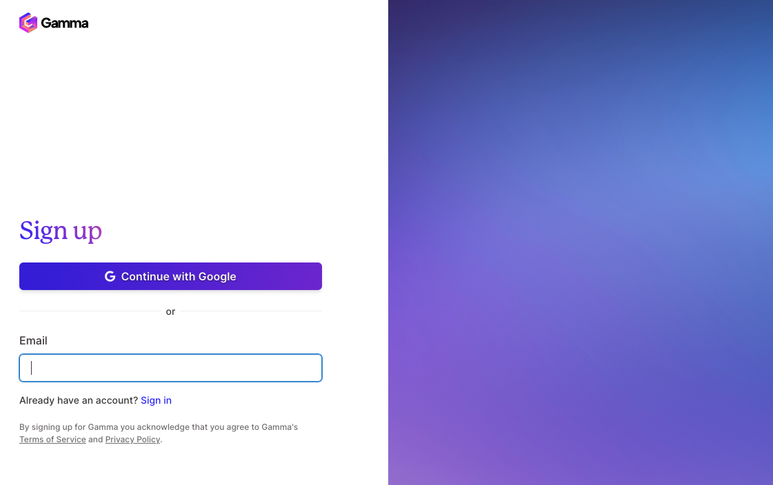- 회원가입: 이메일 주소를 입력해 계정을 생성합니다.