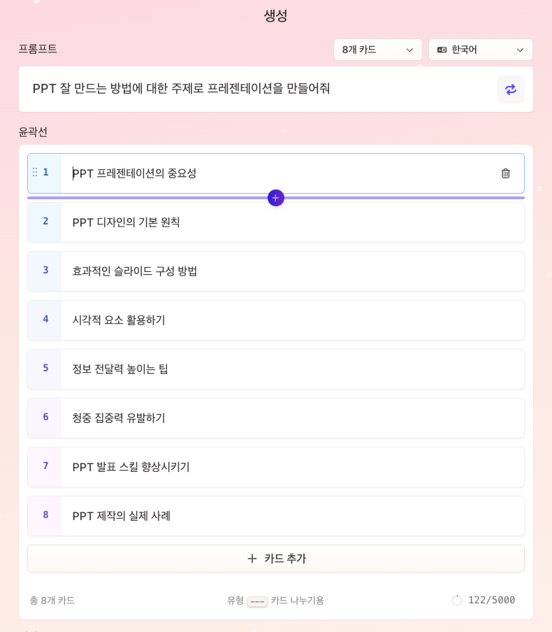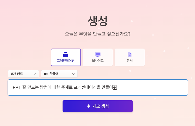 - AI가 입력된 내용을 바탕으로 슬라이드를 자동으로 생성합니다.