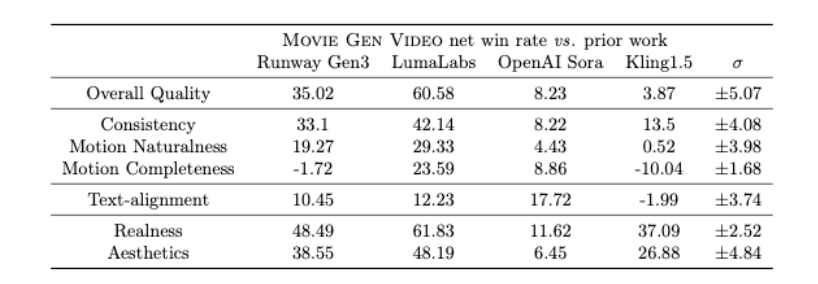 무비 젠은 기존의 동영상 생성 AI들과 비교했을 때 일관성, 동작의 자연스러움 등 다양한 속성에서 우수한 성능을 자랑하며, 인간 평가자들로부터 높은 평가를 받았습니다. 메타는 이를 위해 1억 개의 비디오와 10억 개의 이미지로 AI를 학습시켰으며, 이를 통해 물리적인 현실 세계를 이해하고 자연스러운 영상을 생성하는 능력을 향상시켰습니다.