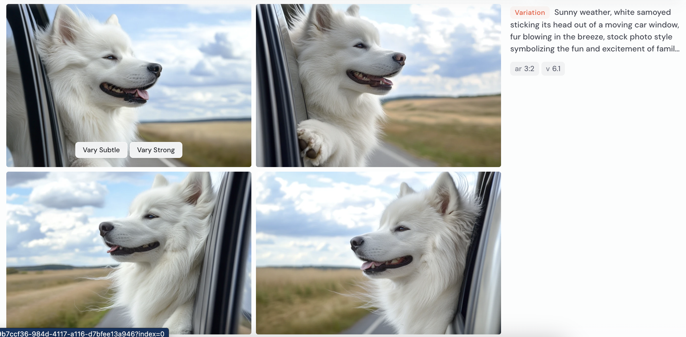 Vary subtle을 누르면 선택한 이미지를 최대한 유지하면서 약간의 변화를 준 4장의 사진을 생성합니다.