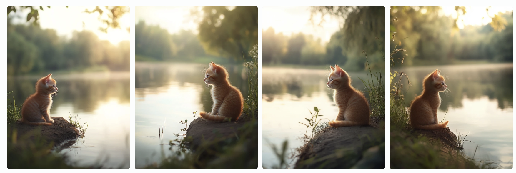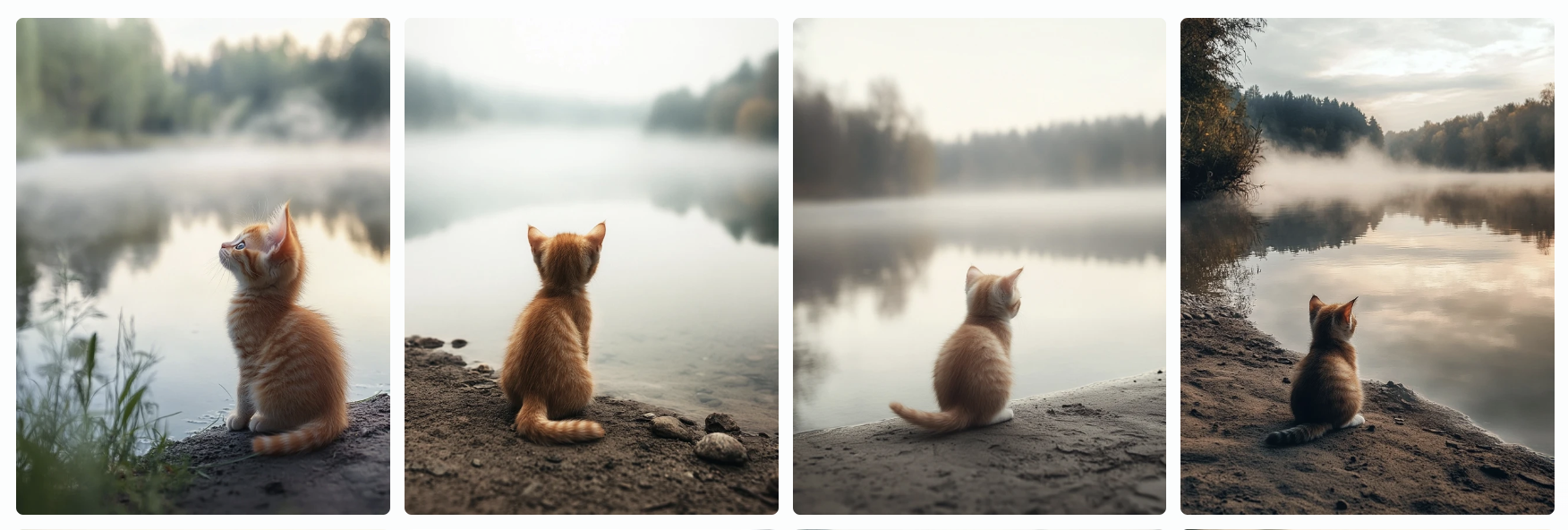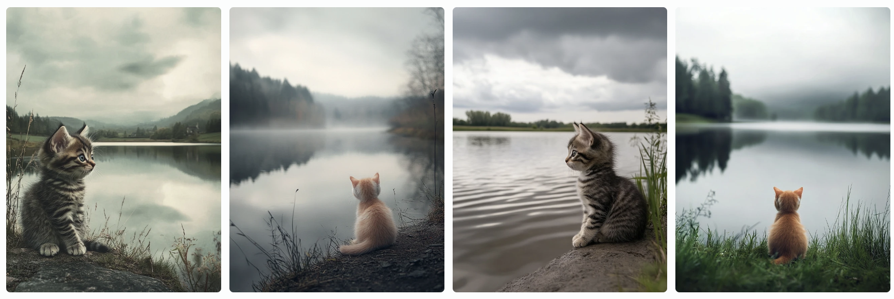 • 프롬프트 예시: “A baby kitten sitting by a calm lake, overcast sky, cloudy afternoon, Real photo images, fine detail”
