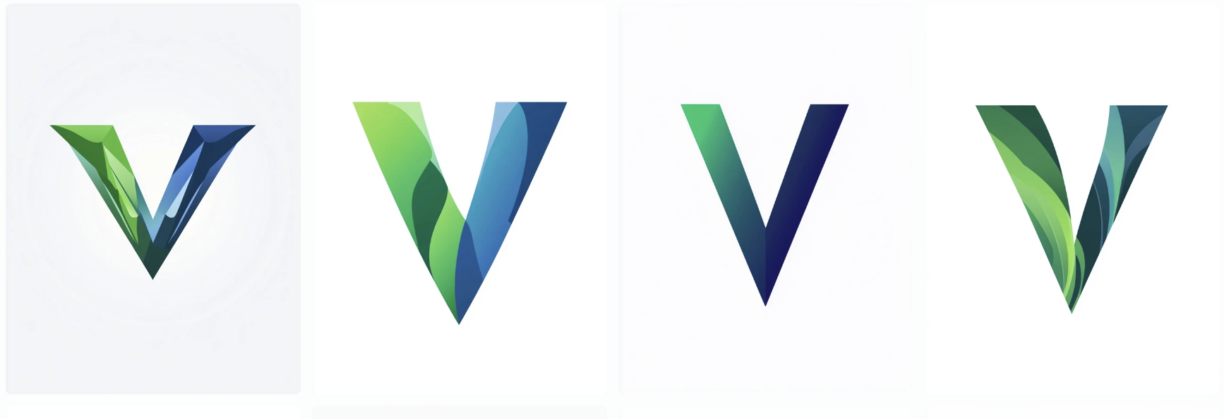 lettermark logo of letter V, green, blue, vector, simple minimal, white background