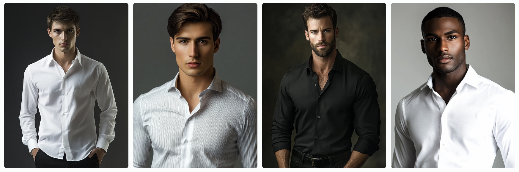 프롬프트 예시 : direct lighting, studio portrait, formal shirt male model