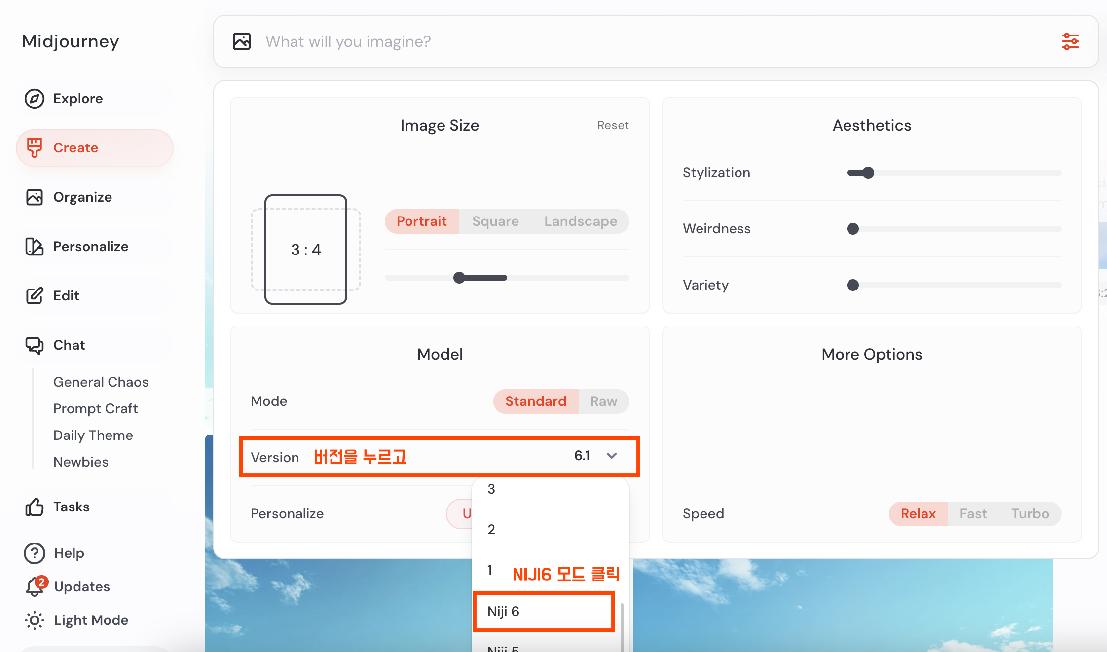 애니메이션과 같은 느낌을 가진 이미지를 생성하는 데에 최적화된 도구가 바로 미드저니의 Niji6 모드입니다. 일반적인 이미지 생성 모드와 달리, Niji6는 애니메이션 스타일을 강조하는 기능을 갖추고 있어 개성 넘치는 애니메이션 풍 이미지를 만들어낼 수 있습니다. 오늘은 미드저니의 Niji6를 활용해, 일반 이미지와 애니메이션 느낌의 차이를 알아보고 실제로 어떤 방식으로 이미지를 생성할 수 있는지 예시를 통해 설명해드리겠습니다.