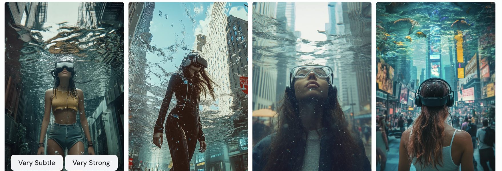 20-year-old woman walking down a hip New York street wearing a headset, underwater shot --ar 2:3 --v 6.1