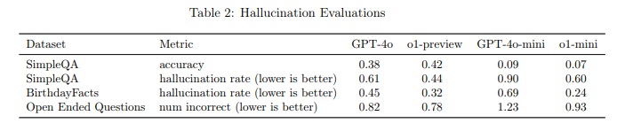 - 가짜 정보 제공 확률: o1-프리뷰 모델이 약 0.38%의 경우에 가짜 참조나 인용을 포함한 가짜 정보를 제공했다고 밝혔습니다.