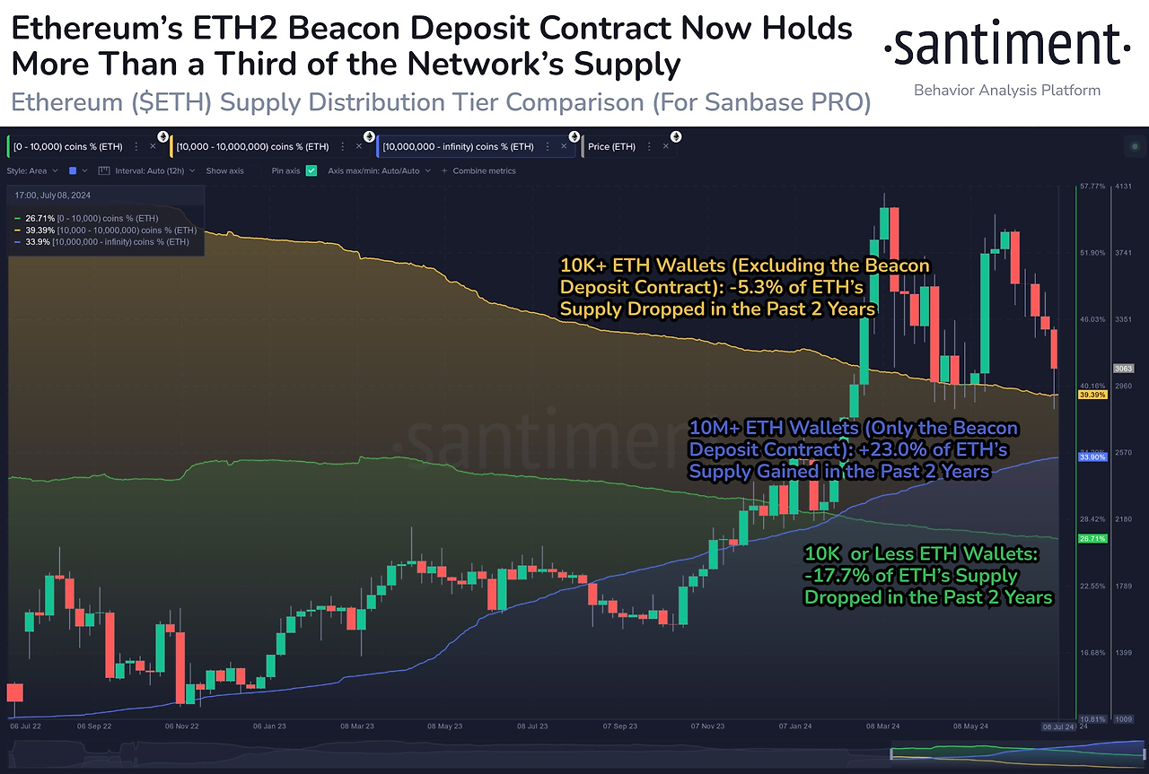 최근 이더리움(ETH)의 스테이킹 양이 사상 최고치를 기록하면서, 전체 공급량의 27.7%에 달하고 있습니다. 크립토퀀트의 연구 책임자인 훌리오 모레노는 스테이킹된 이더리움 수가 3330만 ETH에 달한다고 밝혔습니다. 이러한 스테이킹 증가는 이더리움의 유통량을 억제하고 있으며, 이더리움의 인플레이션 자산화 방지에 기여하고 있습니다.