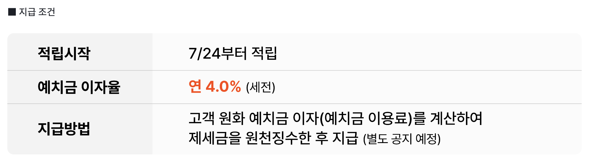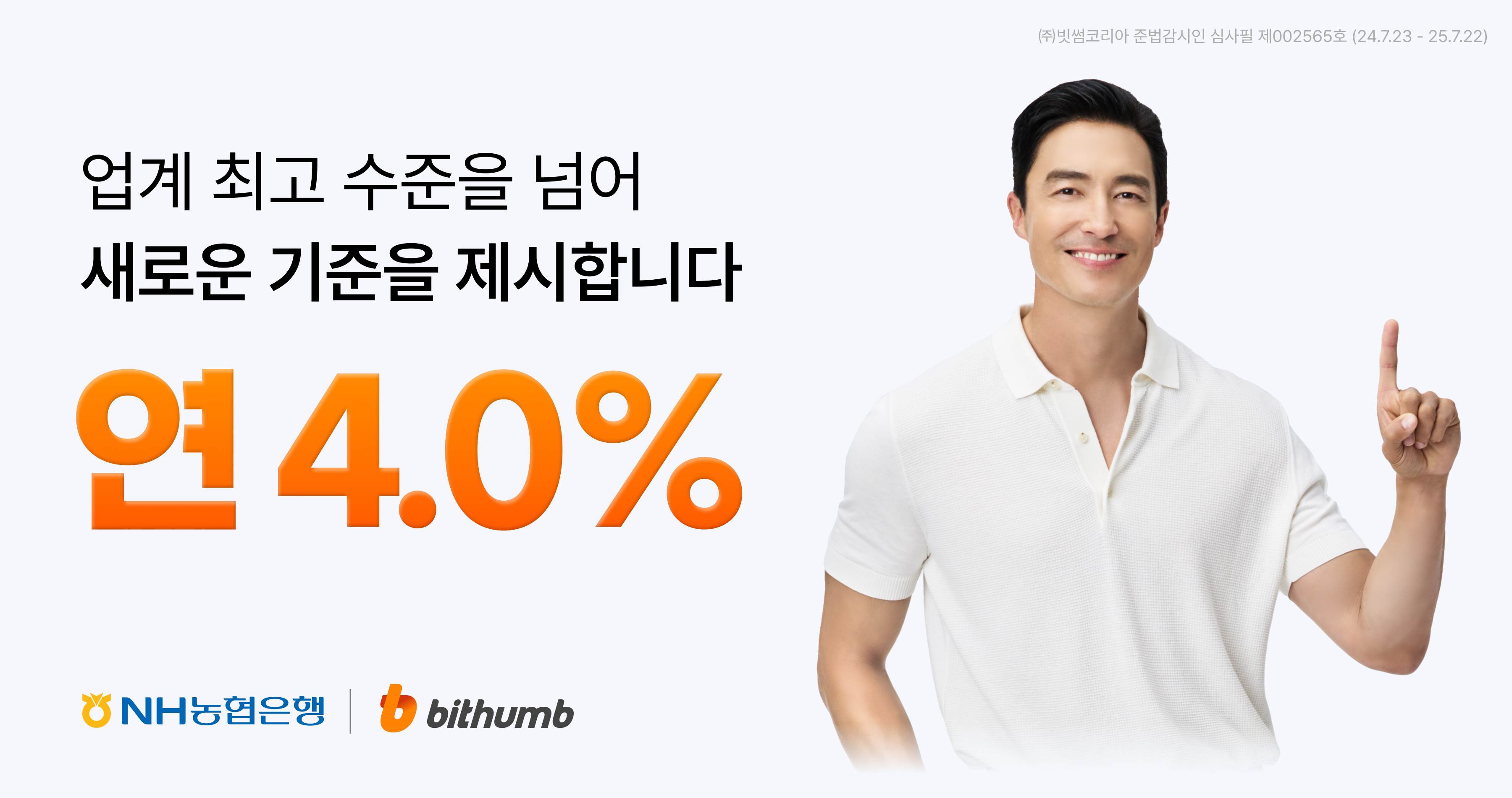 빗썸은 제휴 은행인 NH농협은행의 관리·운용을 통해 발생하는 연 2.0%의 이자에 추가로 연 2.0%를 더해 최종 연 4.0%의 이용료를 지급하기로 했습니다. 이 새로운 이용료율은 오는 24일부터 적용됩니다.