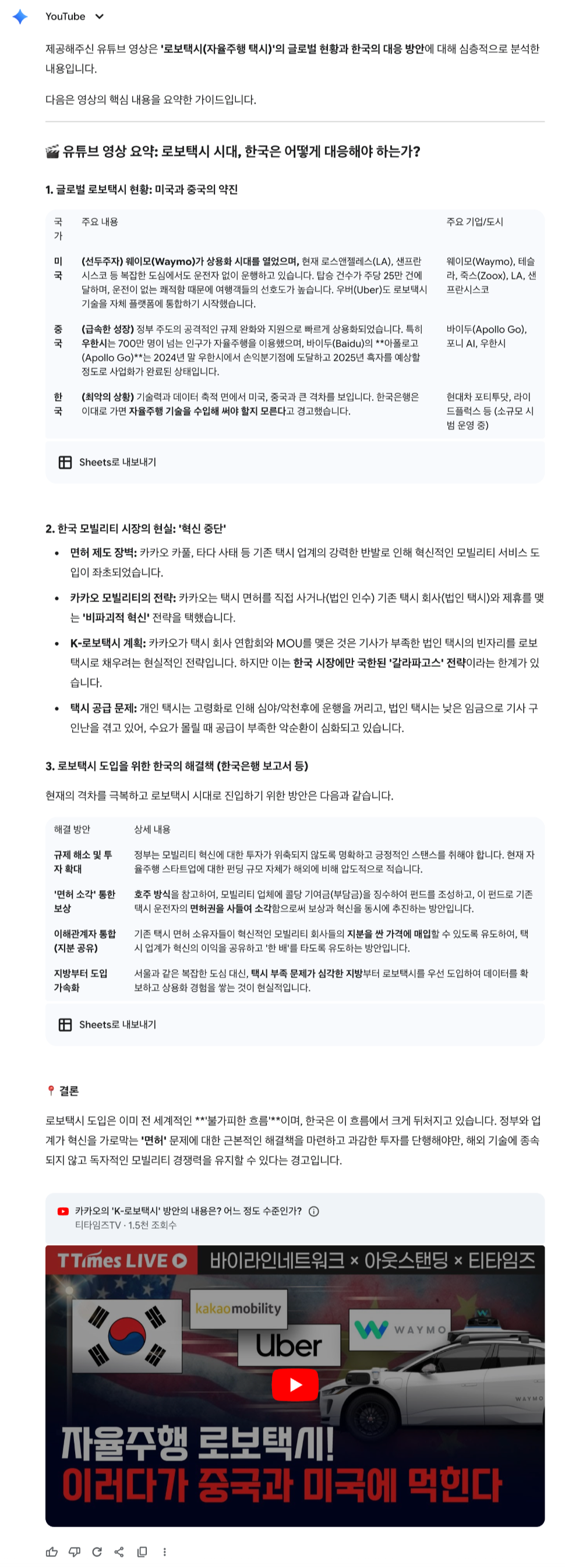 예를 들어, 링크를 올리면서 “이 영상에서 발표자가 제시한 해결책만 알려줘”라고 하면 그 부분만 정리해서 보여줍니다.