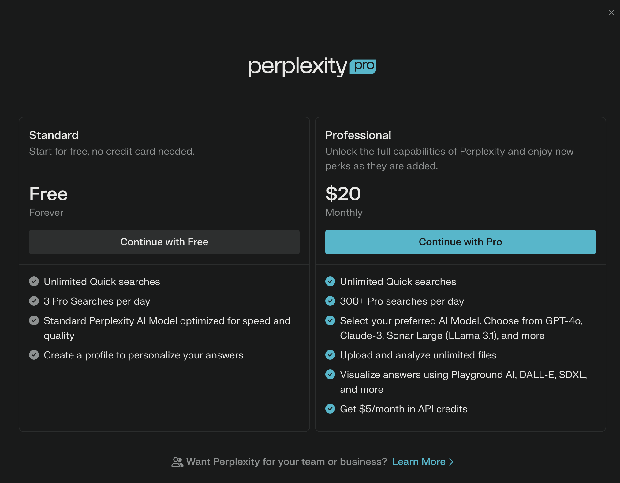 Perplexity는 무료 사용자 외에도 Pro 사용자에게 추가적인 기능을 제공합니다. 예를 들어, 다양한 AI 모델을 선택할 수 있으며, 파일 업로드를 통해 PDF, 이미지 등의 파일을 AI가 분석하게 할 수 있습니다. 이는 연구자나 비즈니스 분석가에게 유용한 기능입니다.