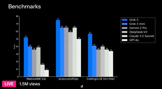 그록-3는 여러 AI 벤치마크 테스트에서 GPT-4o를 능가하는 성능을 보였습니다.
